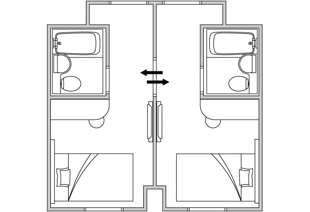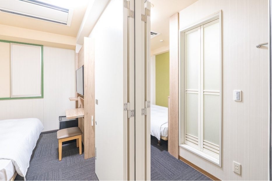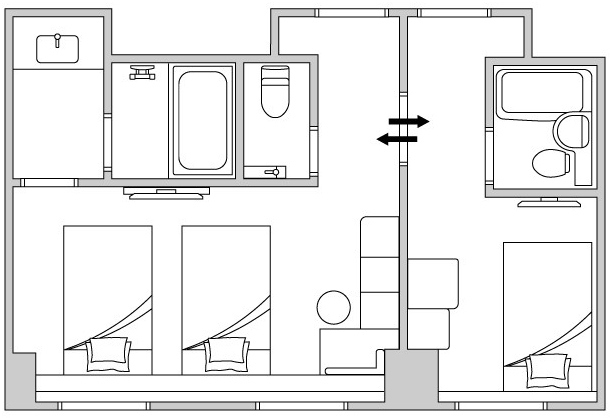 隣り合うふたつの部屋を部屋内の「コネクティングドア」でつなげたお部屋です。