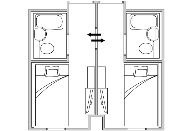 行き来ができるのが特徴です。家族や友人同士での宿泊に最適な宿泊スタイルです。